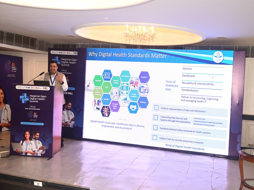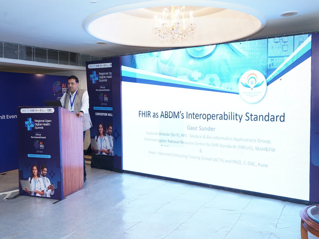 "Talk on "FHIR as ABDM's Interoperability Standard" at the Regional Open Digital Health Summit 2025 in Delhi."